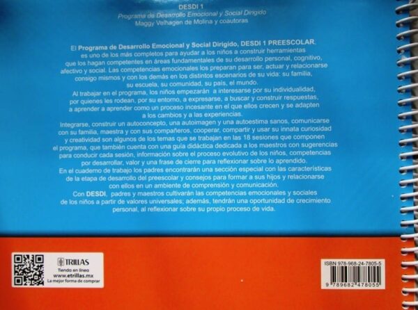 El programa de Desarrollo Emocional y Social Dirigido por Competencias, DESDI 1 PREESCOLAR, es uno de los más completos para ayudar a los niños a construir herramientas que lo hagan competentes en áreas fundamentales de su desarrollo personal, cognitivo, afectivo y social. Las competencias emocionales los preparan para ser, actuar y relacionarse consigo mismos y con los demás en los distintos escenarios de su vida: su familia, su escuela, su comunidad, su país, el mundo.